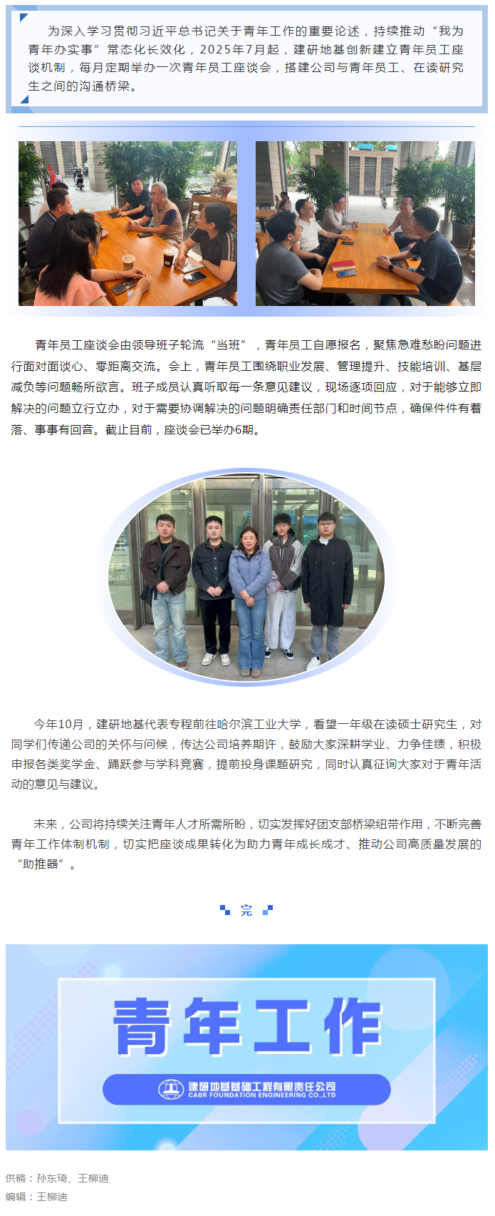 “青”听建言 共促提升 | 建研地基开展青年座谈
