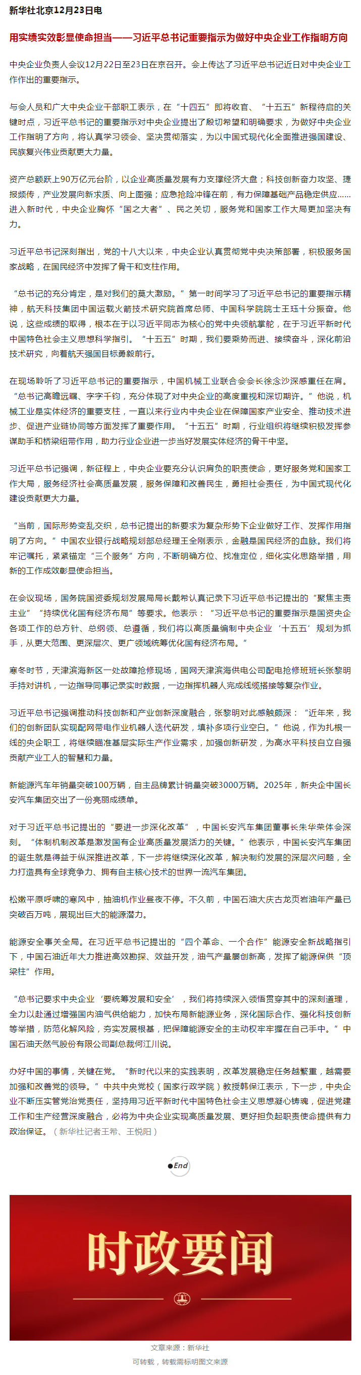 新华社:习近平总书记重要指示为做好中央企业工作指明方向