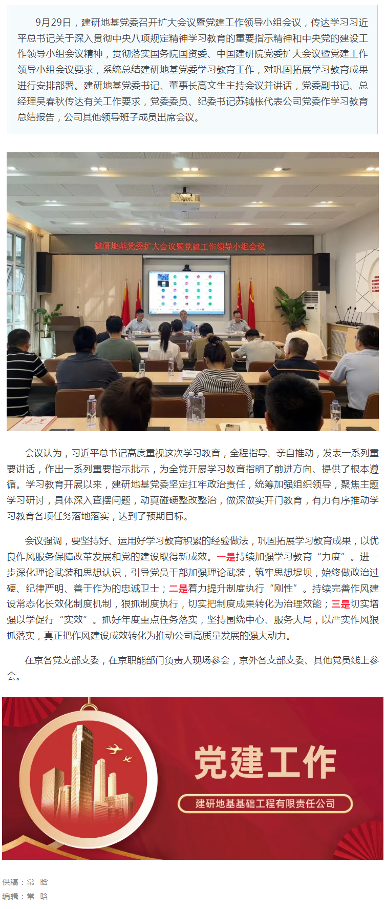 建研地基党委召开扩大会议暨党建工作领导小组会议