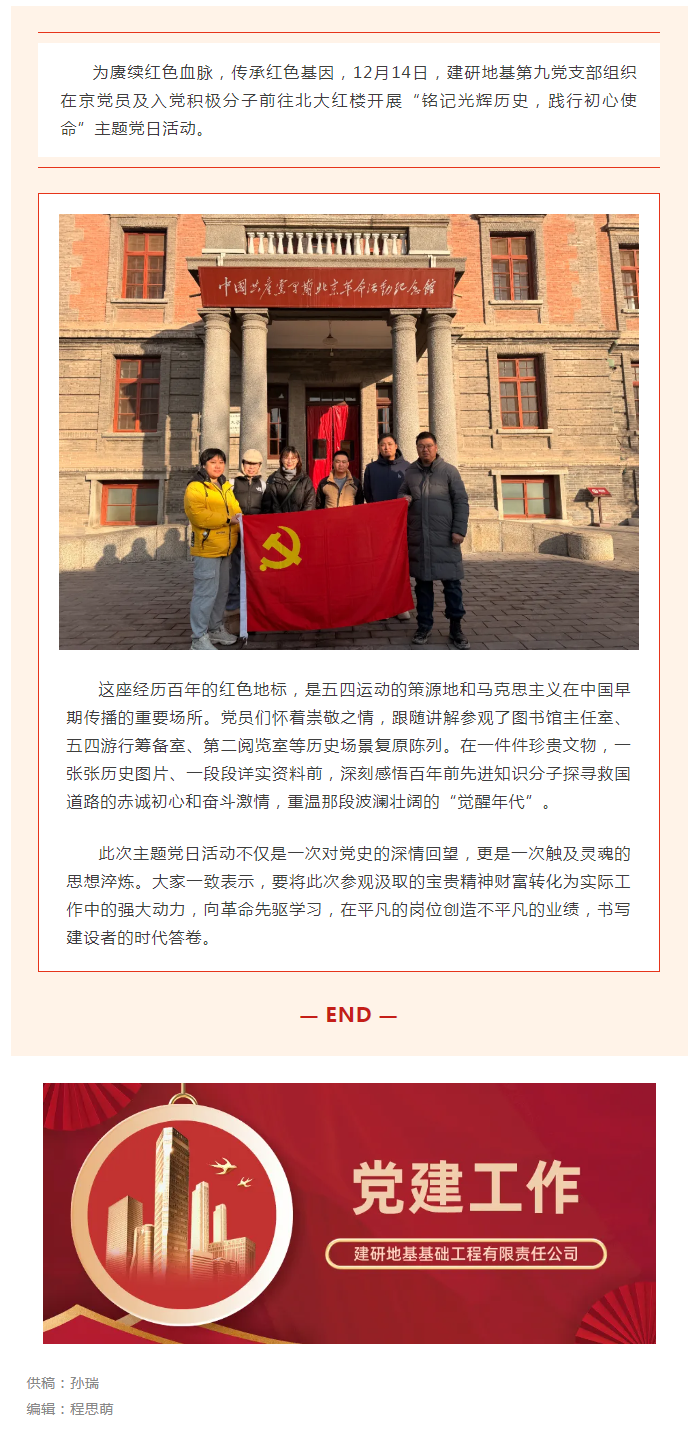铭记光辉历史 践行初心使命 | 建研地基第九党支部开展主题党日活动