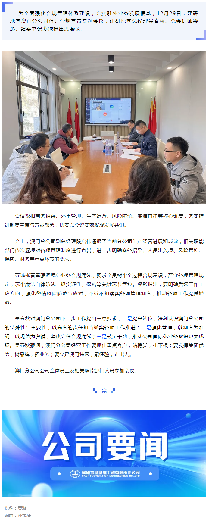 澳门分公司开展合规宣贯专题会议 为驻外业务高质量发展筑牢根基
