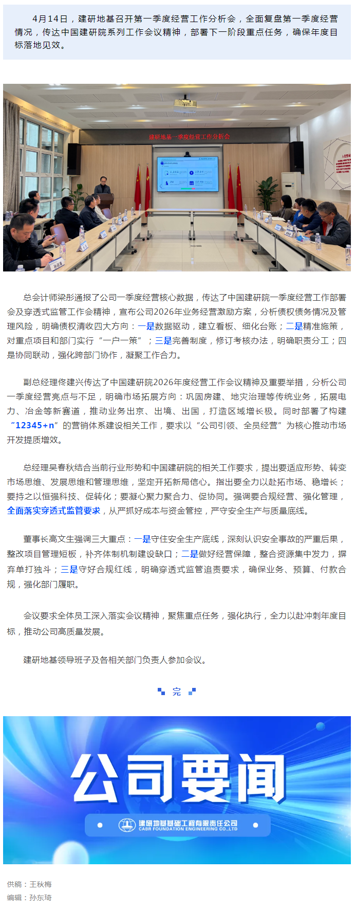 实干笃行启新程 | 建研地基召开2026年第一季度经营工作分析会