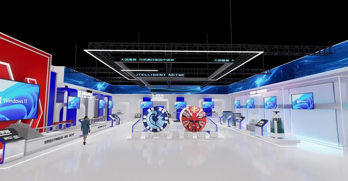 大国重器展区,对“京华号”盾构机、“昆仑号”高铁箱梁运架一体机、空中造楼机等14件重器模型进行展示,涵盖架桥、穿地、筑楼三大领域,实现“向地探索、向天延伸、向远贯通”,以大国重器共筑美好家园中国梦。
