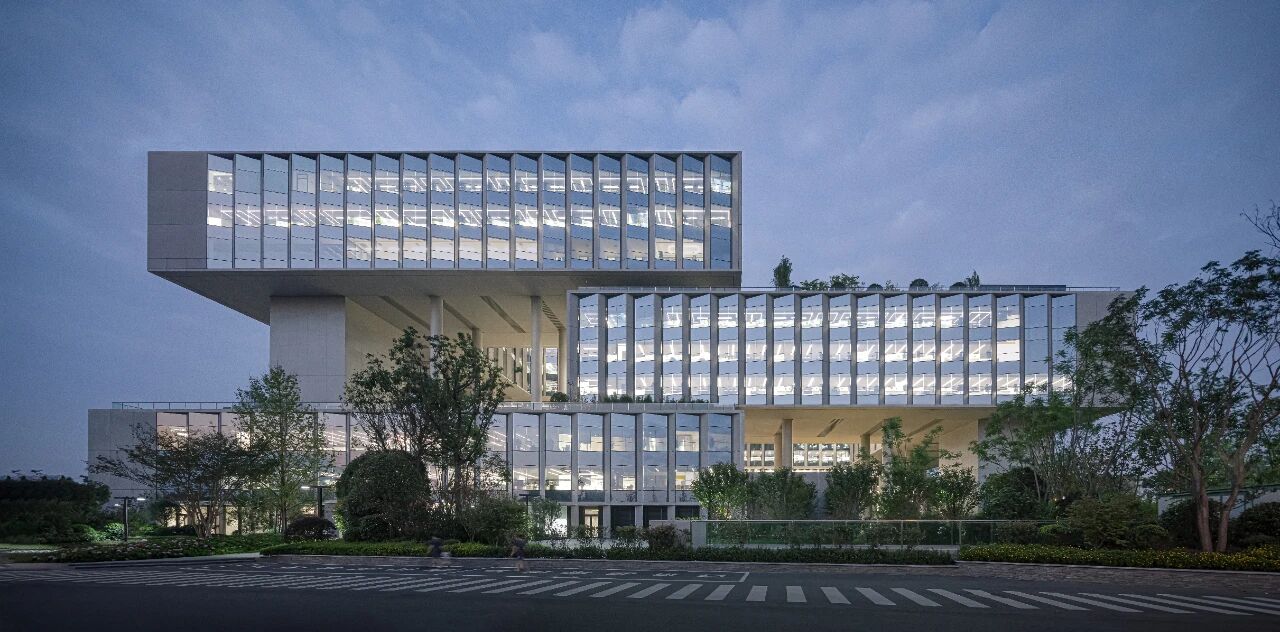 项目简介:本项目是京东集团唯一的京外总部基地,位于成都市武侯区电商产业功能区,为超万人京东集团西南地区工作人员提供花园式办公环境和一站式服务。作为京东集团西南总部,项目主要功能空间包括四层高全天光入口大厅、超大开敞办公区及通高的室内运动休闲区等。项目采用“矩阵式”核心筒及三段式“8”字错层旋扭的方式构成高效的工作空间,其三层挑空的空中花园成为项目最大的亮点;“矩阵式”核心筒内容纳电梯、楼梯等竖向流线交通,同时也是立柱、宽跨度大梁之外的主要结构元素,形成逻辑合理的结构系统,保证建筑功能空间的灵活性;建筑形态简洁,钢结构与清水混凝土板的结构外露式设计高度融合。