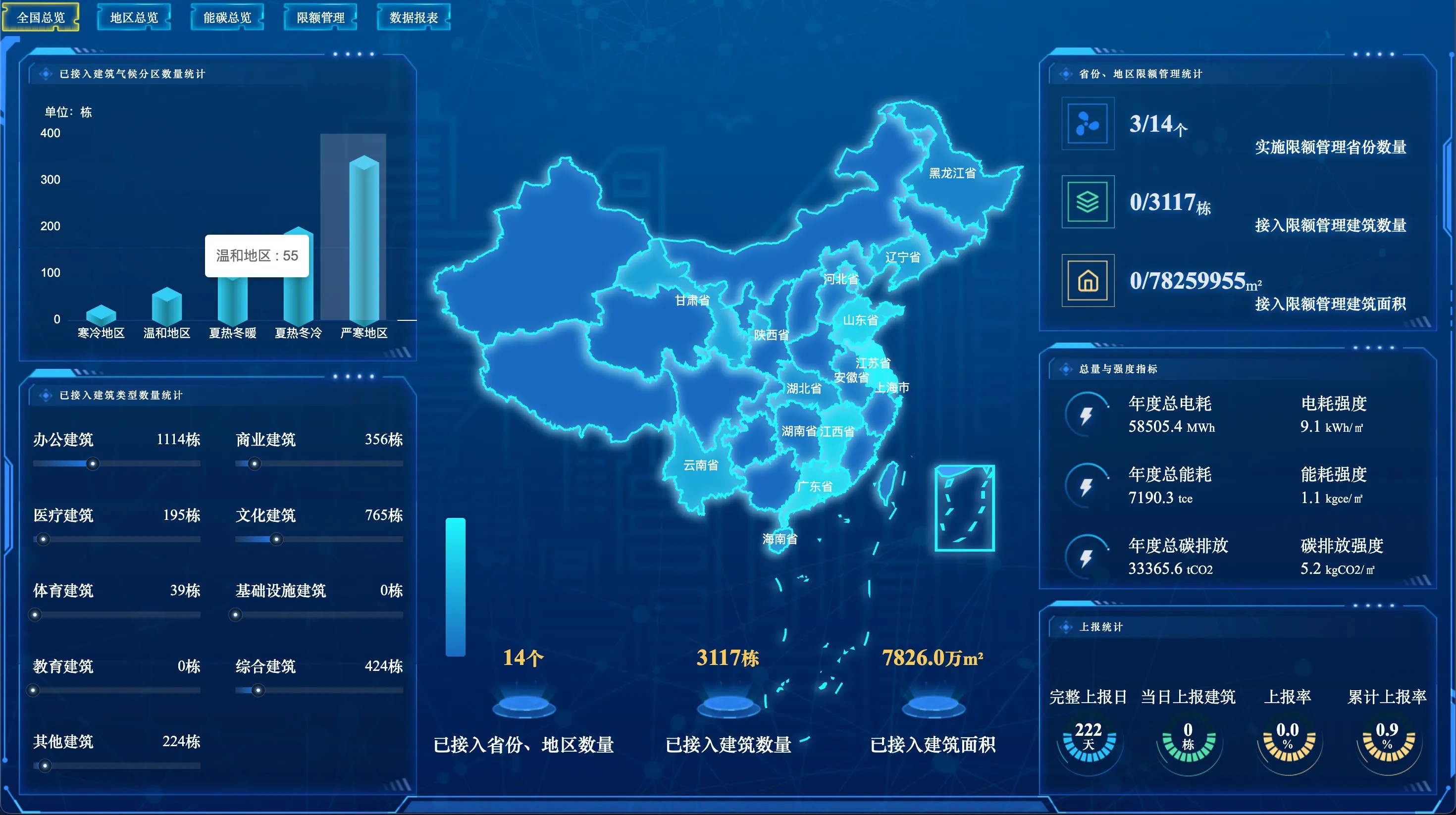 截至目前,该平台已收集包含上海市、江苏省、甘肃省、重庆市等14个省市上千栋建筑能碳数据,接入管理的建筑面积超过7400万平米,累计采集的百万条能碳数据已形成典型气候区城市公共建筑运行能碳高质量数据集。
